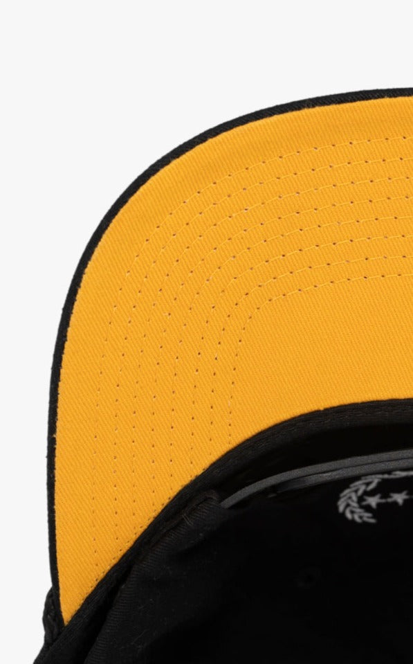 100% Cotton , Black , Sunglow Yellow underbrim.