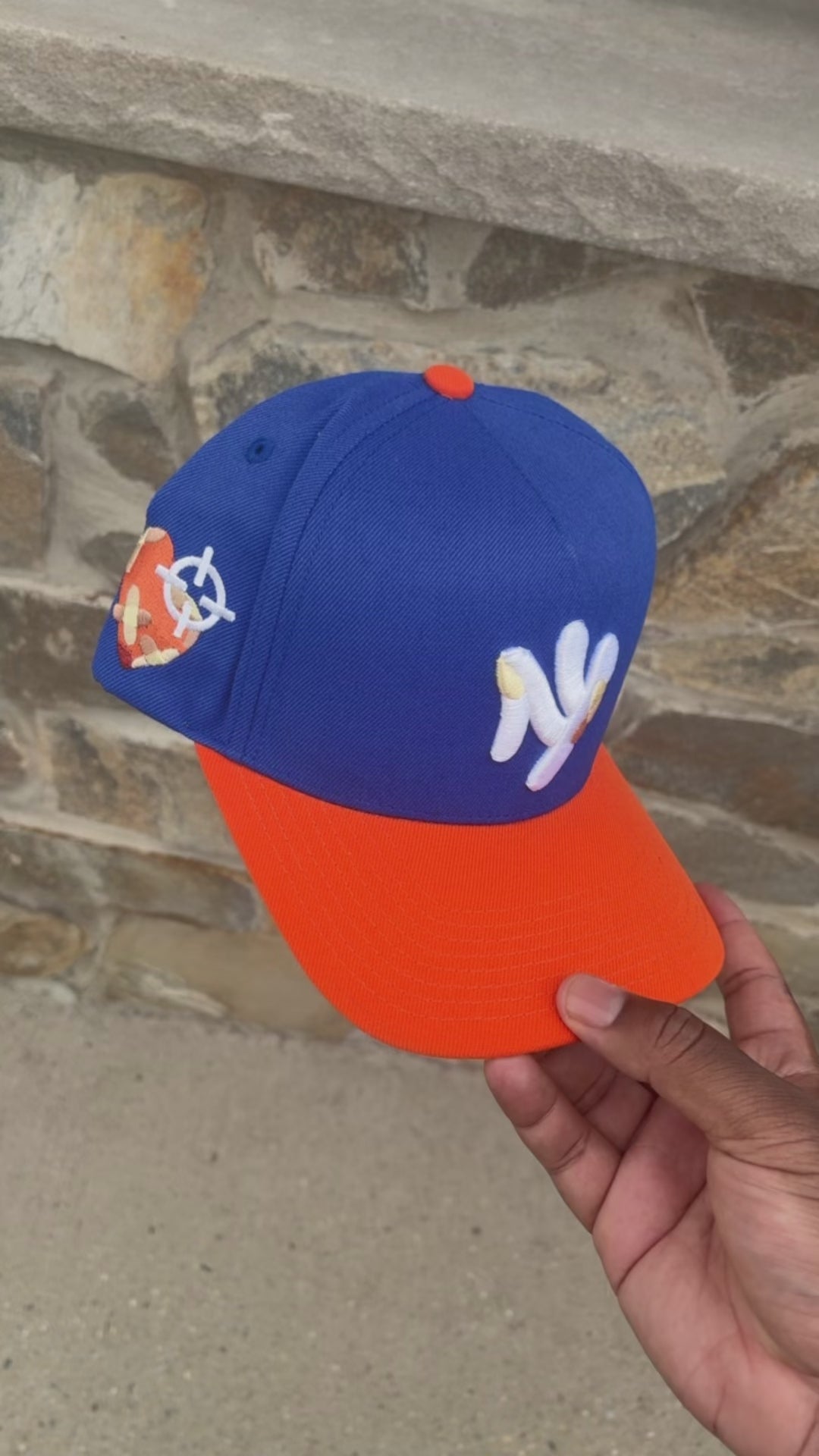 100% cotton Base, White Logos, Blue Base, Orange Brim , Grey Underbrim