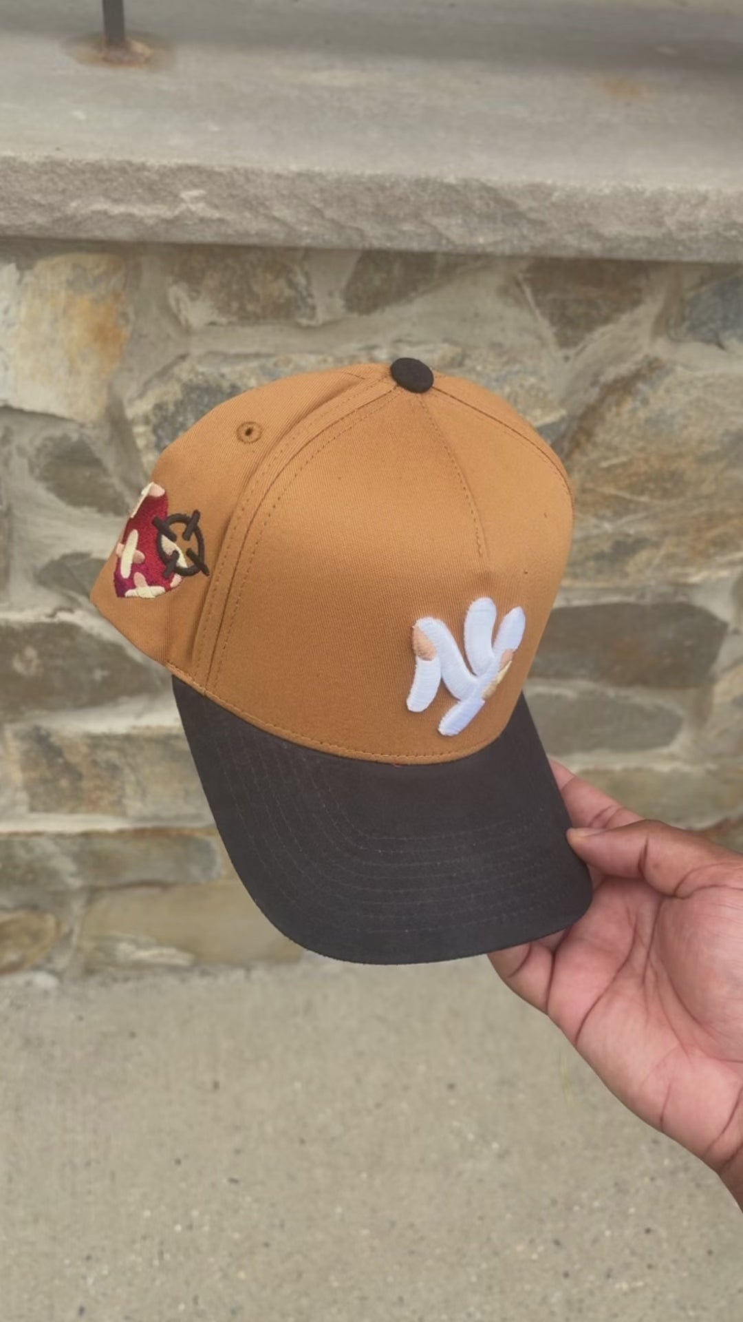 100% cotton Base, White Logos, Tan Base, Black Suede l Brim , Grey Underbrim