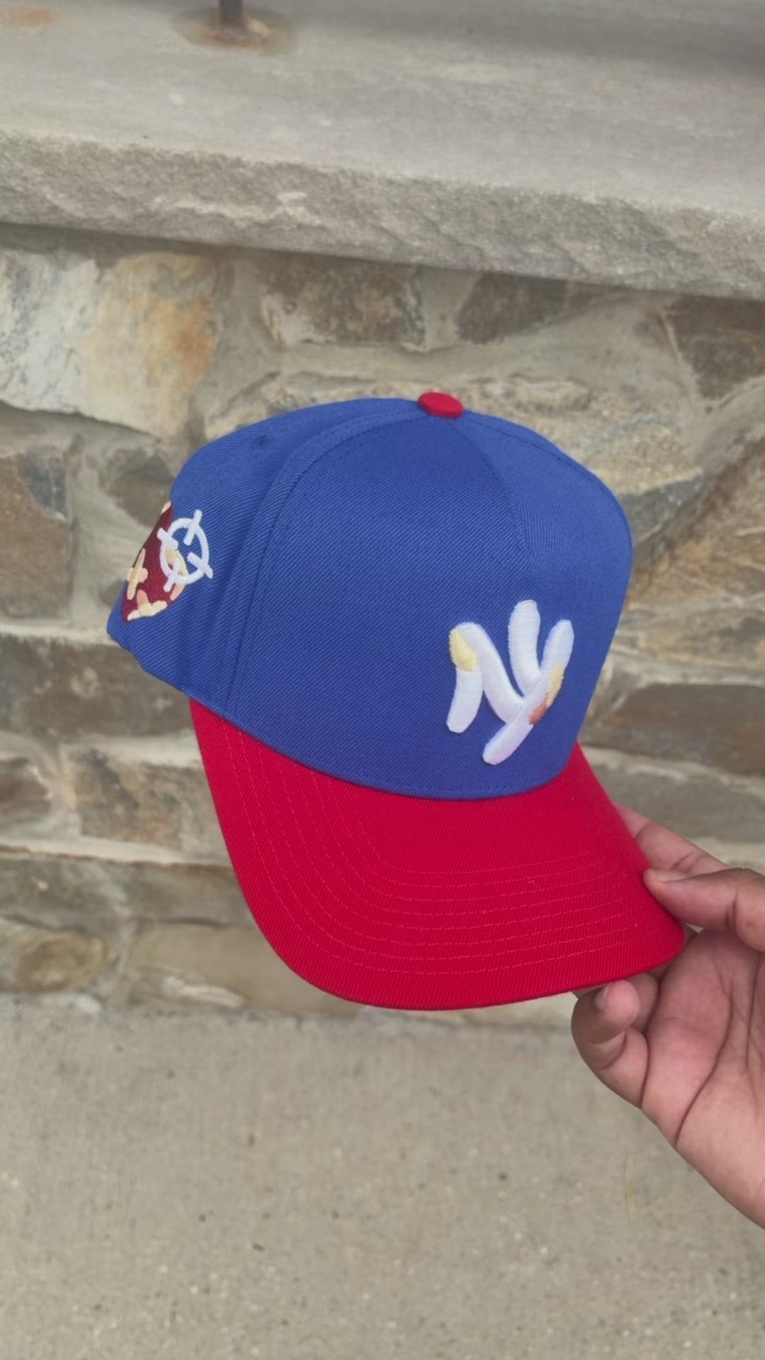 100% cotton Base, White Logos, Blue Base, Red Brim , Grey Underbrim